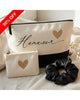 Персонализиран подарък за жена – дамски несесер с нейното име и блестящо сърчице + луксозно скрънчи от 100% естествена коприна за копринено мека коса 🎀